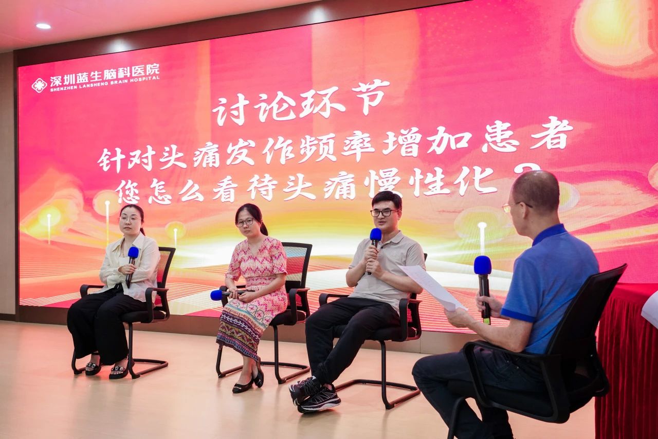 論壇特別設置了討論環節,由深圳藍生腦科醫院神經內科主任張強主持,深圳市卒中學會頭痛分會秘書長陳思展、北京大學深圳醫院神經內科主任林凱華等多位專家共同參與,圍繞如何看待“頻繁發作的偏頭痛可能演變為慢性偏頭痛,增加臨床管理難度”這一臨床熱點展開深度探討。