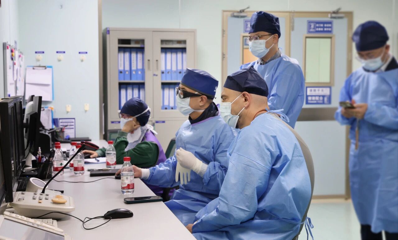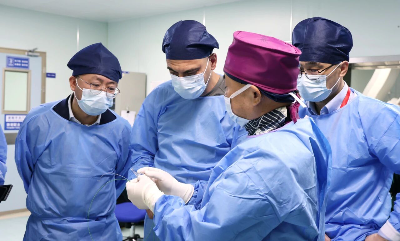 手術過程中,藍十字團隊展現了流暢的操作流程、對器械特性的深刻理解以及應對復雜血管條件的嫻熟技巧。Tareq Kass-Hout副教授對“零交換”技術帶來的操作簡化、效率提升及潛在風險降低表示出濃厚興趣,并在術后與手術團隊就技術細節、適應證把握以及圍手術期管理要點進行了深入交流。他對藍十字在腦血管介入領域展現出的技術水準和創新能力給予了高度評價,認為這為雙方未來在該領域開展更具體的技術合作與聯合研究提供了堅實的實踐基礎。