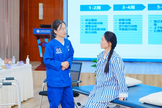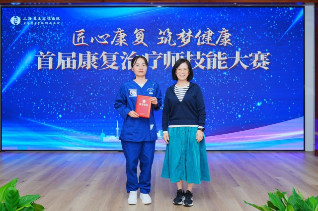 評(píng)委專(zhuān)家分別從“病例描述、評(píng)估準(zhǔn)確性、方案創(chuàng)新性、現(xiàn)場(chǎng)操作、現(xiàn)場(chǎng)表達(dá)”五個(gè)維度打分,結(jié)合現(xiàn)場(chǎng)提問(wèn)表現(xiàn),最終綜合三位專(zhuān)家的評(píng)分,比賽成績(jī)當(dāng)場(chǎng)揭曉:雷珍珍《髖關(guān)節(jié)置換術(shù)后康復(fù)技能展示》獲得一等獎(jiǎng);王倩 《腰椎骨折術(shù)后康復(fù)治療的案例匯報(bào)》、趙艷艷《丘腦出血患者病例分享》分獲二等獎(jiǎng);緱鵬威《從“心”開(kāi)始,自在呼吸》、荊梅《“肩”守使命,“袖”寫(xiě)未來(lái)》獲得三等獎(jiǎng)。大賽現(xiàn)場(chǎng)舉行了頒獎(jiǎng)儀式。