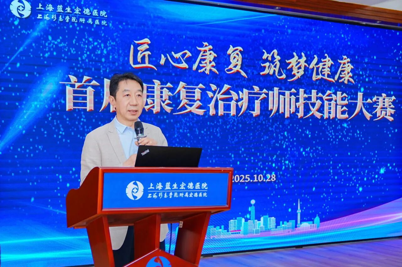 上海藍(lán)生宏德醫(yī)院周宏宇院長(zhǎng)、林志強(qiáng)總經(jīng)理等領(lǐng)導(dǎo)、病區(qū)科主任、機(jī)關(guān)相關(guān)職能部門(mén)負(fù)責(zé)人和康復(fù)治療師等參會(huì)聆聽(tīng)。大賽由康復(fù)醫(yī)學(xué)科主任王偉祥教授主持。