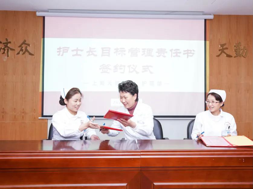 為進一步強化目標管理和責任擔當,提高護理管理的科學化、規范化和精細化水平,會上,唐秀花主任與各科護士長簽署了《2021年護士長目標管理責任書》。