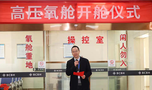 沈承如院長發表致辭。他表示,經過一年多的規劃和建設,醫院30人座大型現代化醫用高壓氧艙群,順利通過浙江省高壓氧質控中心、特種設備科學研究院,寧波市衛健委,慈溪市衛健局、市場監督管理局的聯合驗收。高壓氧艙的配置和高壓氧科的建設,是實現慈溪巿衛健局對醫院差異化發展指導的重要舉措,也是實現公司在慈溪建設一家特色腦科醫院的重要一步。