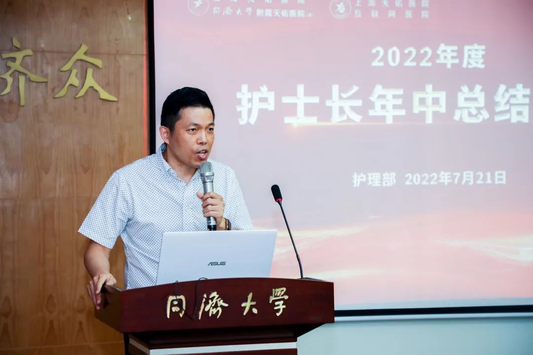 蔡劍飛院長表示,今年上半年防疫仍是重要課題,疫情期間天佑醫(yī)院在抗疫方面取得了出色的成績,離不開全院每一位同志的努力。其中,護理團隊沖鋒在前,勇于擔(dān)當(dāng),用實際行動展現(xiàn)了天佑醫(yī)護出色的戰(zhàn)斗力,當(dāng)之無愧地成為抗疫主力軍。非常感謝各位護士長的辛勤付出,為醫(yī)院能夠順利復(fù)工、快速回歸正常軌道作出了積極貢獻。