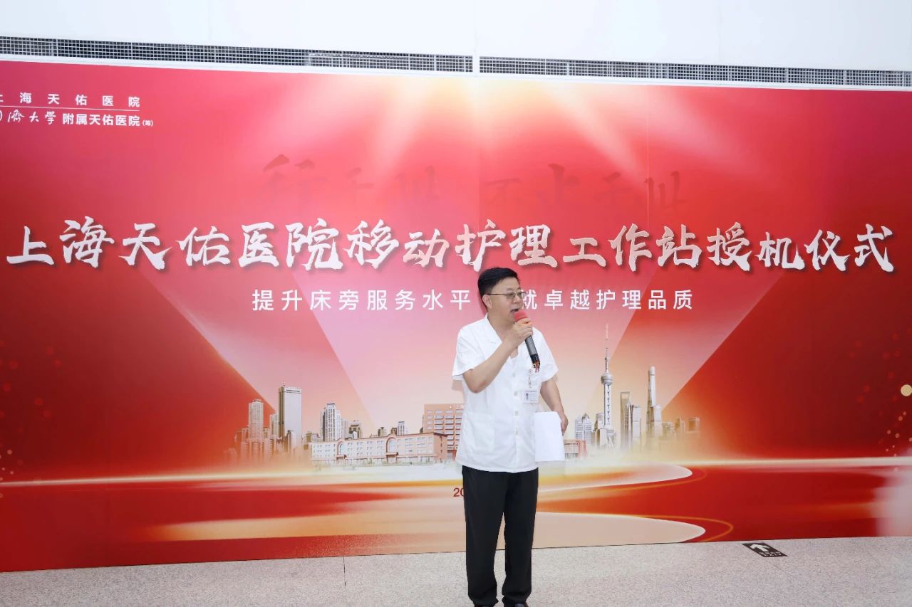 9月26日下午,上海天佑醫(yī)院在門(mén)診大廳舉行移動(dòng)護(hù)理工作站授機(jī)儀式,醫(yī)院蔡劍飛院長(zhǎng)、卓立峰總經(jīng)理和領(lǐng)導(dǎo)班子出席儀式,為16個(gè)病區(qū)授予移動(dòng)護(hù)理工作站。