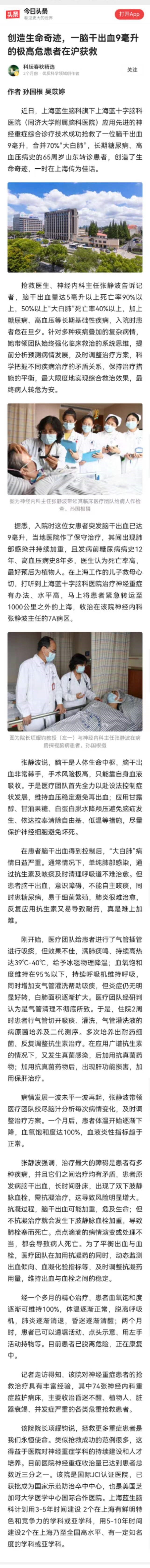 近日,上海藍生腦科旗下上海藍十字腦科醫院(同濟大學附屬腦科醫院)應用先進的神經重癥綜合診療技術成功搶救了一位腦干出血9毫升,合并70%“大白肺”,長期糖尿病、高血壓病史的65周歲山東轉診患者,創造了生命奇跡,一時在上海傳為佳話。