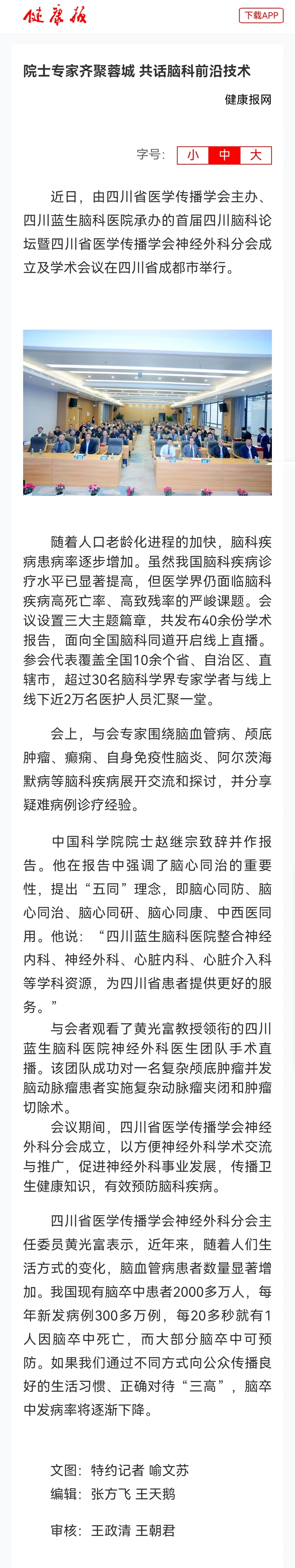 近日,由四川省醫(yī)學(xué)傳播學(xué)會主辦、四川藍(lán)生腦科醫(yī)院承辦的首屆四川腦科論壇暨四川省醫(yī)學(xué)傳播學(xué)會神經(jīng)外科分會成立及學(xué)術(shù)會議在四川省成都市舉行。