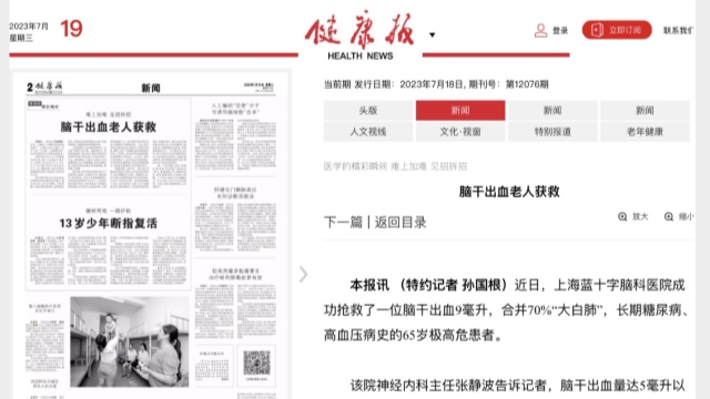 今日頭條:創造生命奇跡,一腦干出血9毫升的極高危患者在滬獲救