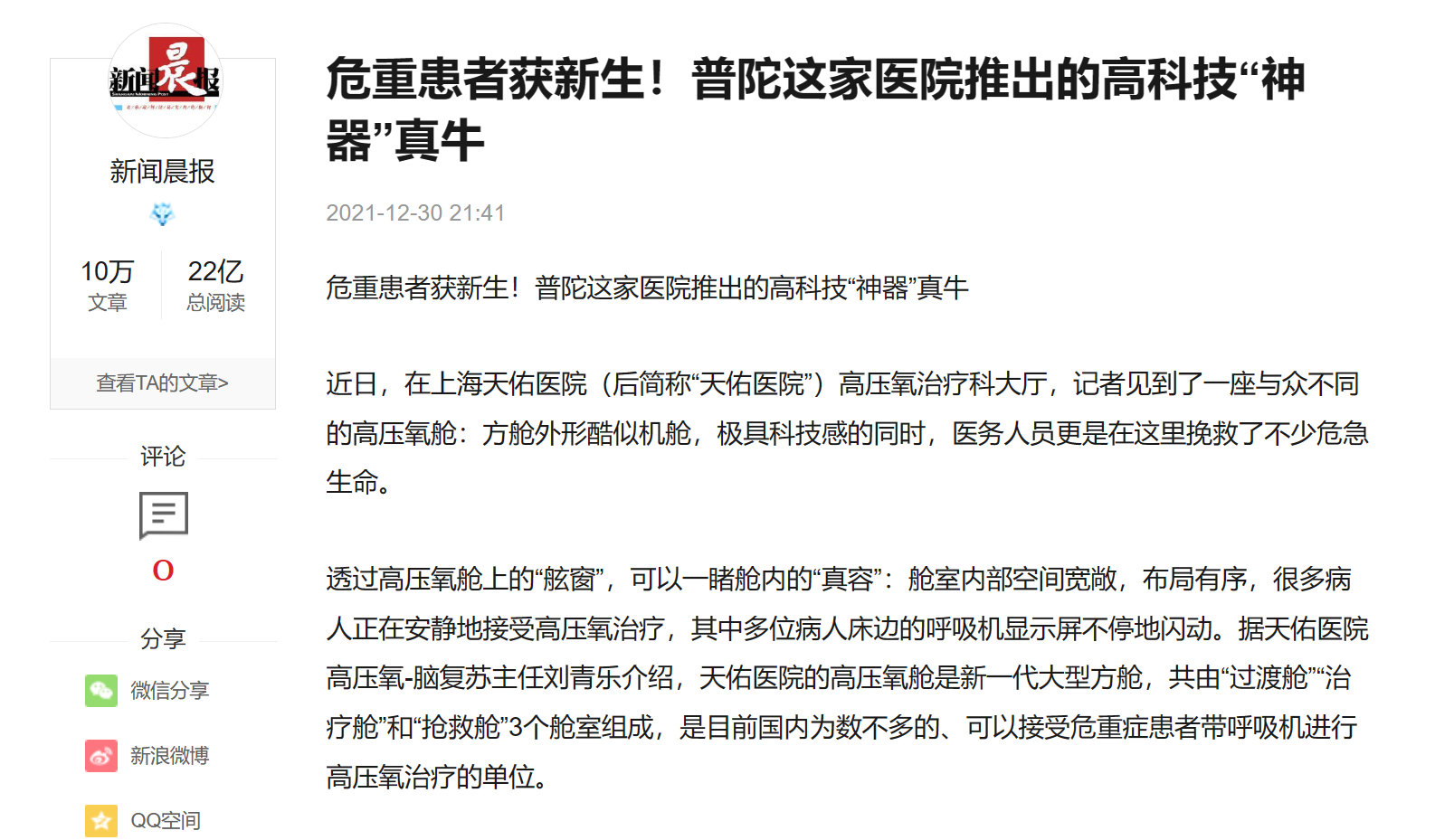 新聞晨報:危重患者獲新生!普陀這家醫(yī)院推出的高科技“神器”真牛