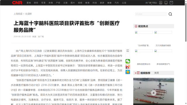 央廣網(wǎng):上海藍十字腦科醫(yī)院項目獲評首批市“創(chuàng)新醫(yī)療服務品牌”