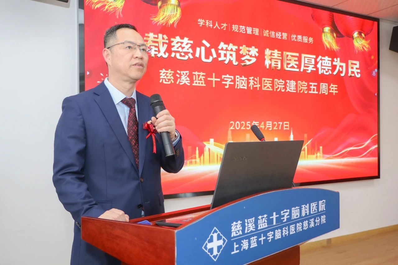 最后,卓立強董事長發(fā)表致辭。他表示,慈溪藍十字腦科醫(yī)院建院五年來,在慈溪市政府部門的正確領(lǐng)導(dǎo)下,在業(yè)界同行的大力幫助下,在當(dāng)?shù)匕傩盏男刨囍С窒拢黜椊ㄔO(shè)取得了長足進步。他希望,醫(yī)院在今后的發(fā)展進程中,要認(rèn)真貫徹國家衛(wèi)生工作方針,嚴(yán)格落實醫(yī)保政策,一切從患者需要出發(fā),自覺踐行“滿意是基礎(chǔ)、感動是目標(biāo)”服務(wù)理念,堅守醫(yī)療初心,恪守醫(yī)療本質(zhì),落實公司高質(zhì)發(fā)展的戰(zhàn)略部署,勵精圖治,奮發(fā)有為,把醫(yī)院建設(shè)成一家“管理精良、文化先進、人才雄厚、技術(shù)精湛、特色鮮明、服務(wù)優(yōu)質(zhì)”、具有獨特區(qū)域品牌優(yōu)勢、受人尊敬的腦科醫(yī)院。