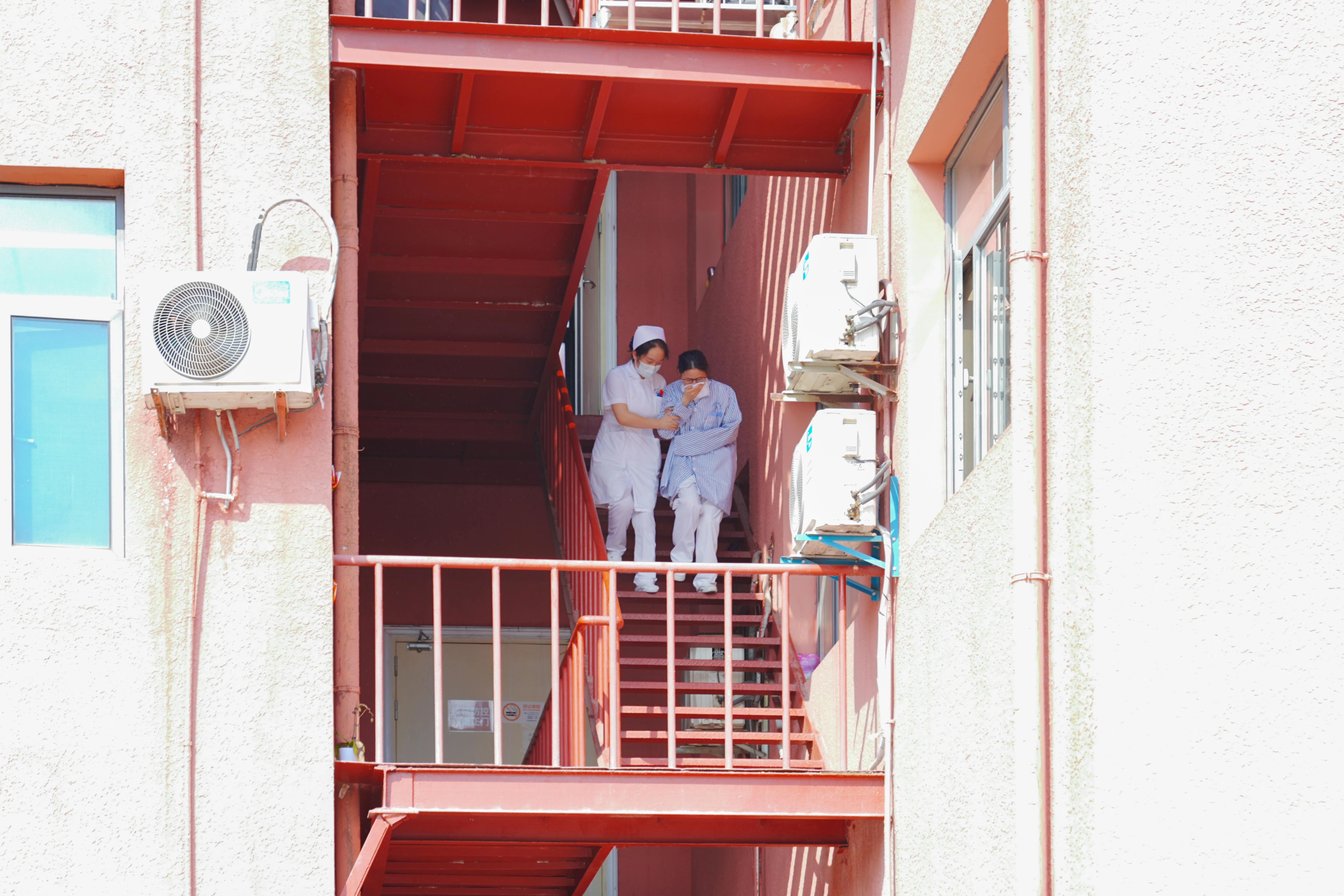 護士長臨危不亂,立即組織護士、護工佩戴防護裝備,按照預(yù)案分工引導(dǎo)人員疏散。演練特別針對不同行動能力患者設(shè)計了精準方案:行動自如者由護士攙扶撤離;半癱瘓患者使用輪椅轉(zhuǎn)移;完全喪失行動能力者則通過轉(zhuǎn)運床安全推出。疏散過程中,引導(dǎo)員不斷提醒大家“用濕毛巾捂口鼻、低頭彎腰扶墻走、走疏散樓梯、禁止乘電梯”,確保撤離迅速、安全、有序。