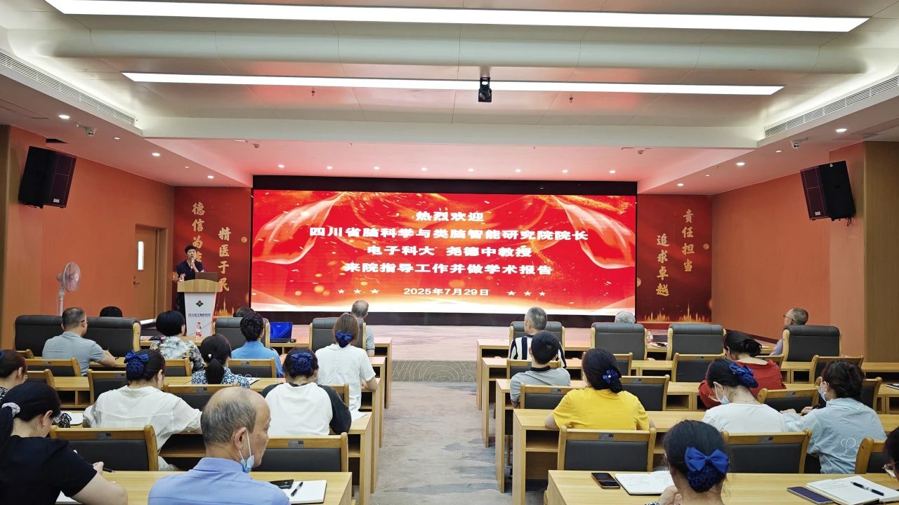 為推動腦科學(xué)前沿技術(shù)臨床轉(zhuǎn)化,促進多學(xué)科交叉融合創(chuàng)新,7月29日下午,四川藍(lán)生腦科醫(yī)院特邀電子科技大學(xué)類腦智能研究院堯德中院長來院作專題學(xué)術(shù)報告,并與醫(yī)院腦系學(xué)科帶頭人展開深度研討。