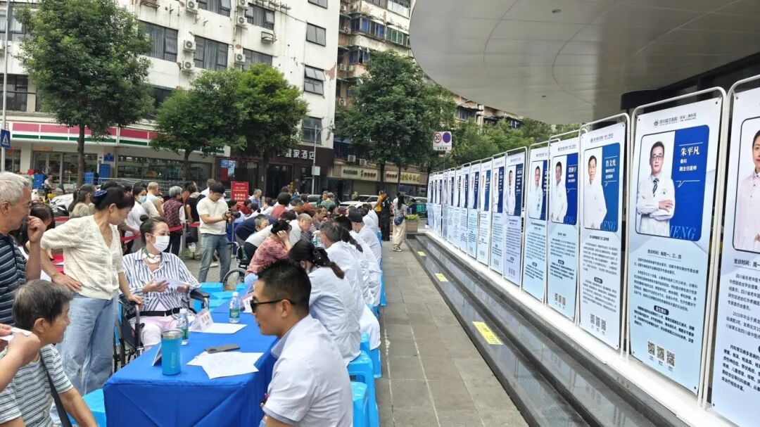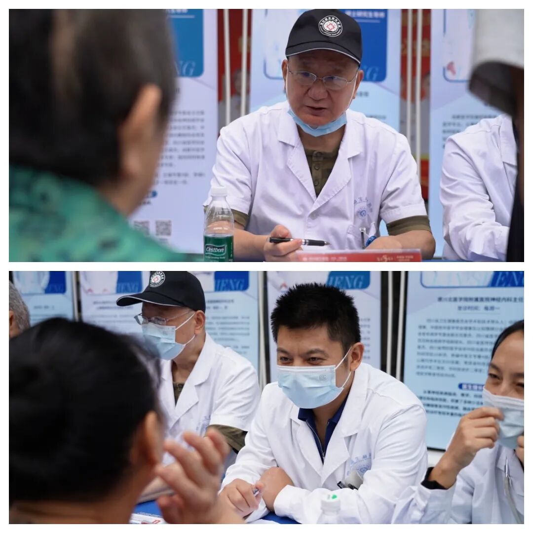 9點不到,活動現場已經聚集了不少前來問診的居民朋友。來自華西醫院、四川省人民醫院、四川省腫瘤醫院以及克利夫蘭醫學中心的知名專家攜手我院各學科帶頭人組成義診專家團隊,全面覆蓋神經內科、神經外科、睡眠與心身醫學科、康復醫學科、腫瘤科等20余個科室,強強聯合,為市民群眾們獻上了一份健康大禮。