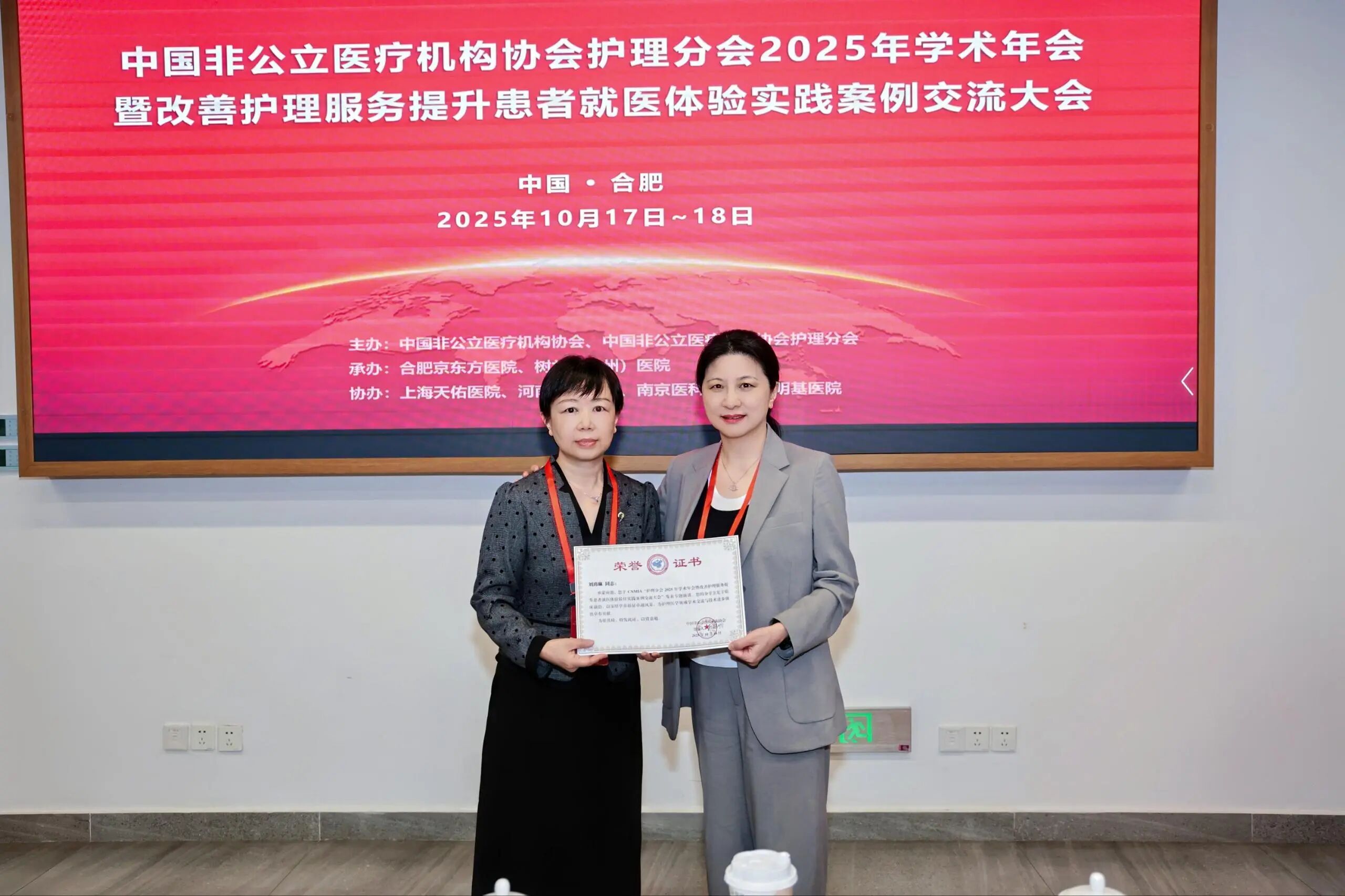 10月17-18日,中國非公立醫療機構協會護理分會2025年學術年會暨改善護理服務提升患者就醫體驗最佳實踐案例交流大會在合肥召開。上海天佑醫院作為大會的協辦單位之一,負責運營與績效管理分會場的籌備工作。會議當天,副院長、護理部主任劉瑋琳帶領覃健鳳、任海燕、張穎三位總護士長參會。