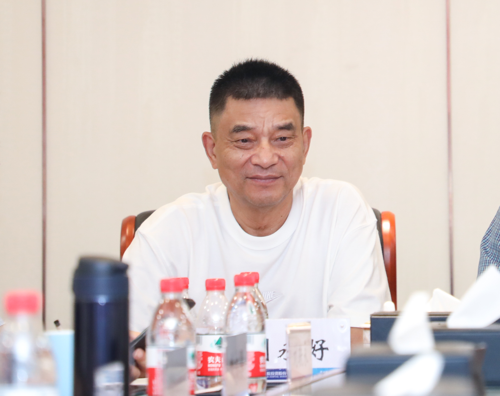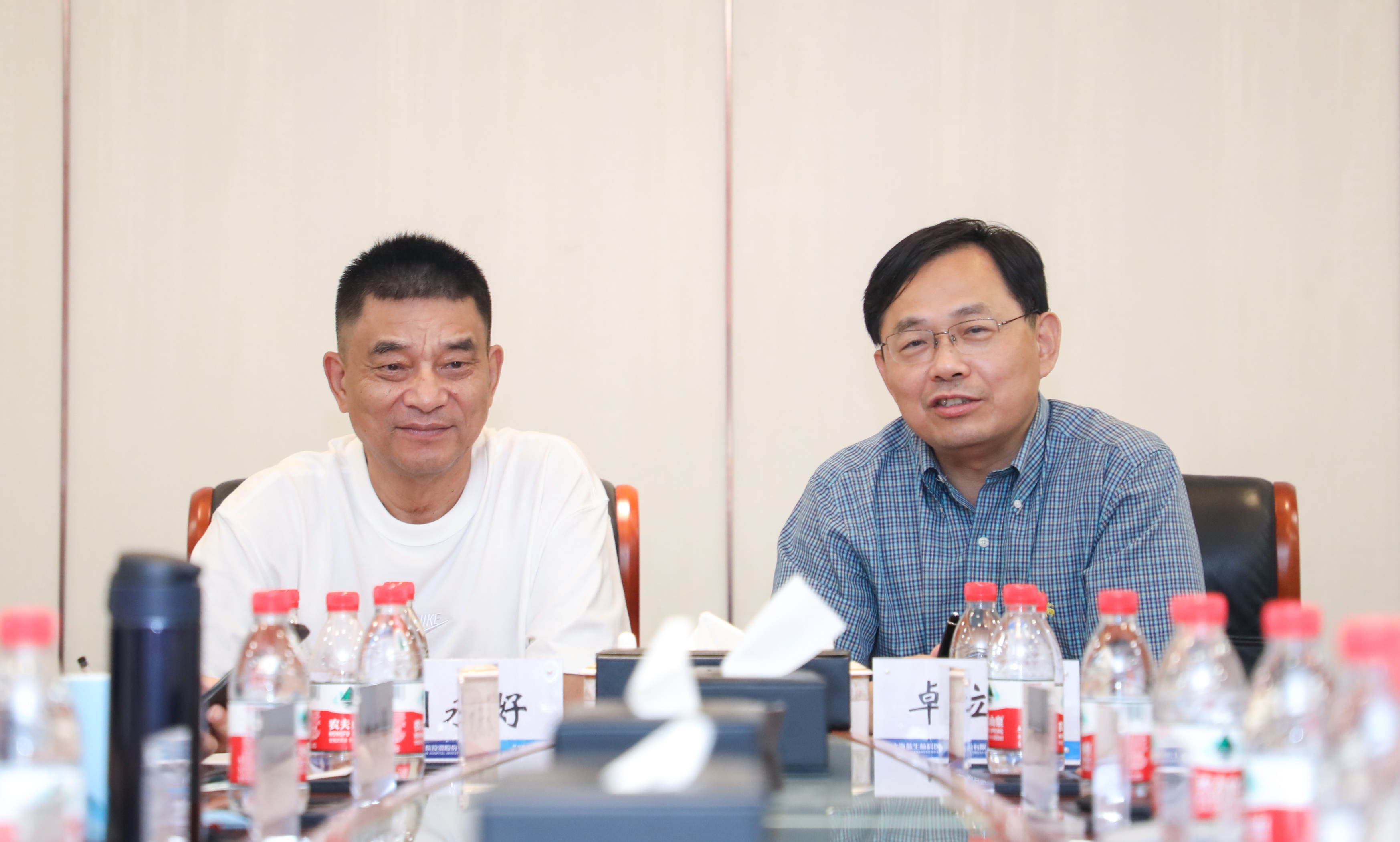在行政會議室,劉永好董事長聽取了公司卓立強董事長對醫院發展的近期要求和醫院徐必生院長、劉金爐總經理的工作匯報。