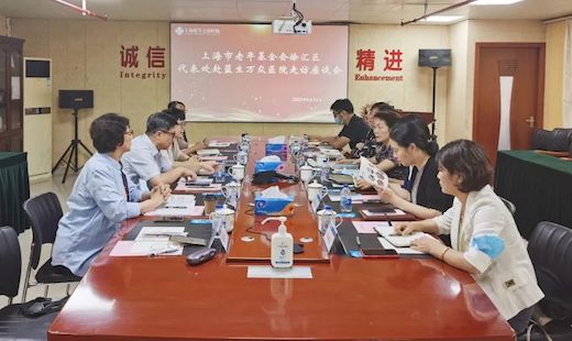在喜迎國慶節(jié)和黨的二十大召開之際,9月23日下午,重陽節(jié)來臨前夕,上海市老年基金會徐匯區(qū)代表處會長彭秋萍,徐匯區(qū)醫(yī)療保障局黨組書記、局長陳艷,區(qū)衛(wèi)生健康工作黨委副書記呂娜,區(qū)民政局黨組成員、副局長張蓉等一行領導蒞臨上海藍生萬眾醫(yī)院走訪座談,醫(yī)院黨支部書記兼總經(jīng)理徐筱林、院長韓建新陪同座談。