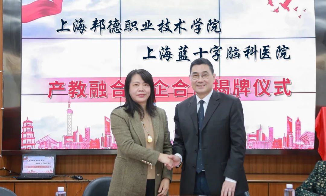 12月7日上午,上海藍十字腦科醫(yī)院與上海邦德職業(yè)學院“產教融合院校合作簽約暨基地揭牌儀式”在學院德賢會議室舉行。學院常務副校長黃艷秋、教科處處長楊自力、健康與護理學院院長陳寧、健康與護理學院黨支部書記鄭楷,公司副總裁葉文琴、醫(yī)療管理部護理培訓主任唐秀花,上海藍十字腦科醫(yī)院院長項耀鈞、副院長潘耀良、護理部主任張秀娟等出席簽約揭牌儀式。儀式由學院健康與護理學院陳寧院長主持。