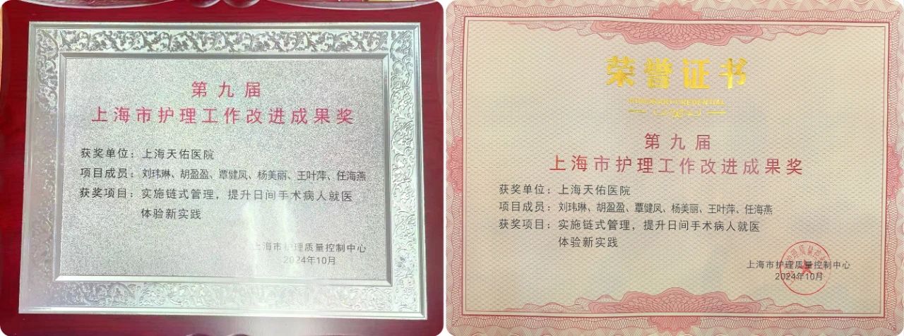 近日,在上海市護理質(zhì)控中心主辦的“提高護理新質(zhì)生產(chǎn)力,彰顯護理專業(yè)價值”全國會議上對第九屆 “上海市護理工作改進成果獎”獲獎單位進行了頒獎。上海天佑醫(yī)院《實施鏈式管理,提升日間手術(shù)病人就醫(yī)體驗新實踐》項目獲得本屆“上海市護理工作改進成果獎”。