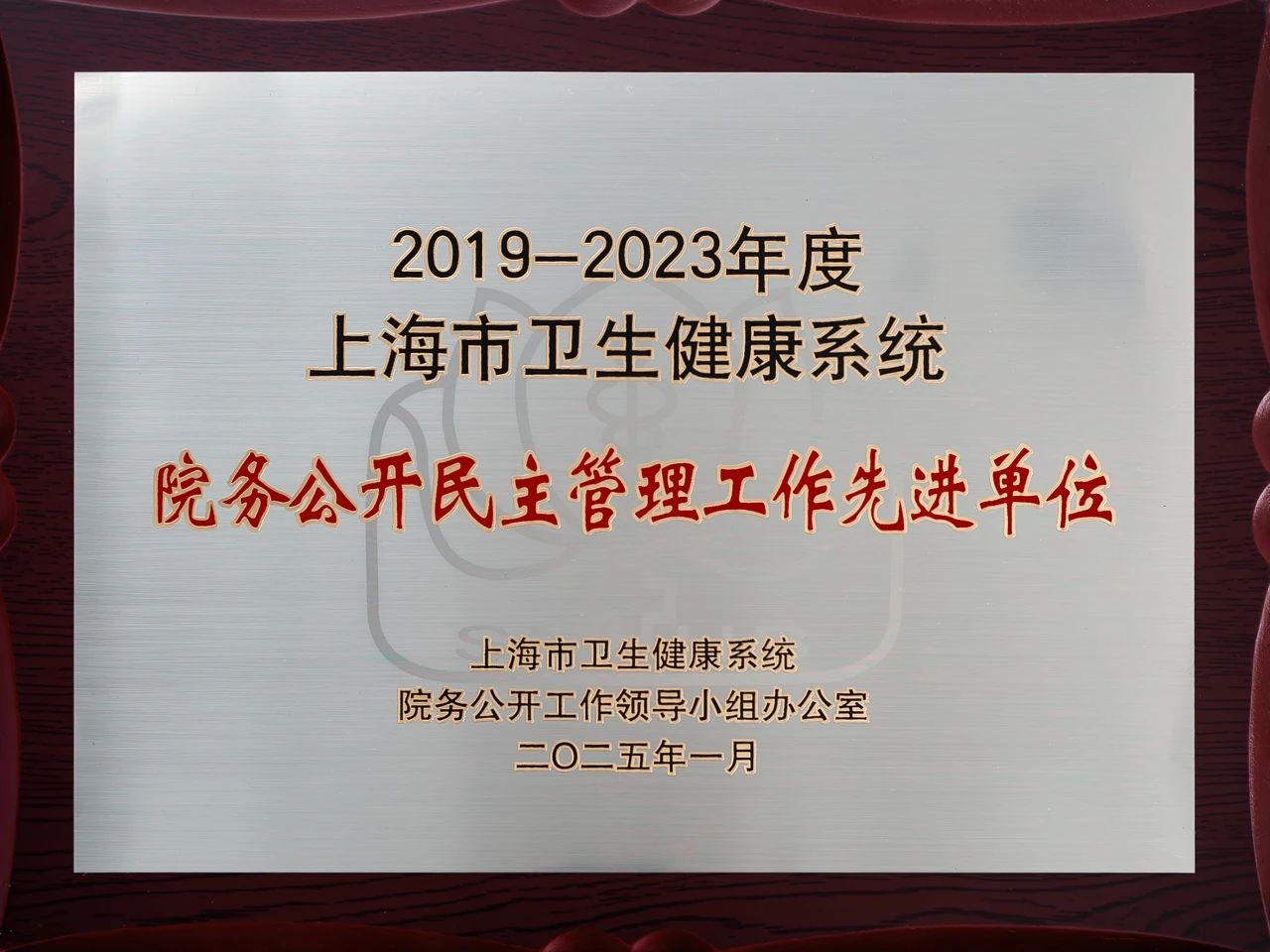 為貫徹落實全過程人民民主,切實發揮院務公開民主管理在完善現代醫院管理制度、提升醫院治理能力中的積極作用,近日,上海市衛生健康系統院務公開工作領導小組決定選樹典型,通報表揚一批先進單位,上海藍生萬眾醫院榮獲“2019-2023年度上海市衛生健康系統院務公開民主管理先進單位”稱號。