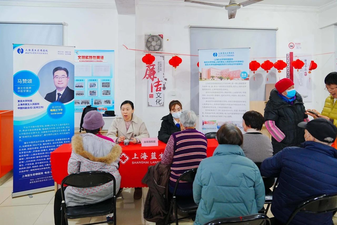 上海藍生宏德醫院組織醫務工作者走進永德街區,參加吳涇鎮“‘涇’朝有愛 暖在社區·‘文明實踐我行動’”主題活動,為附近居民提供中醫健康咨詢、測量血壓、宣教PICC維護技術等服務。醫院志愿者們還深入到虹梅新苑、寶秀居委、紫晶南苑等社區,為居民送去健康咨詢、義診,服務周邊社區居民近200人次。