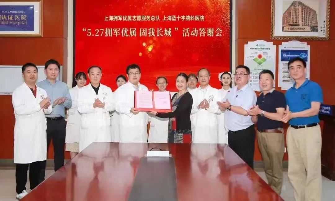 上海市擁軍優屬志愿服務總隊致謝上海藍十字腦科醫院