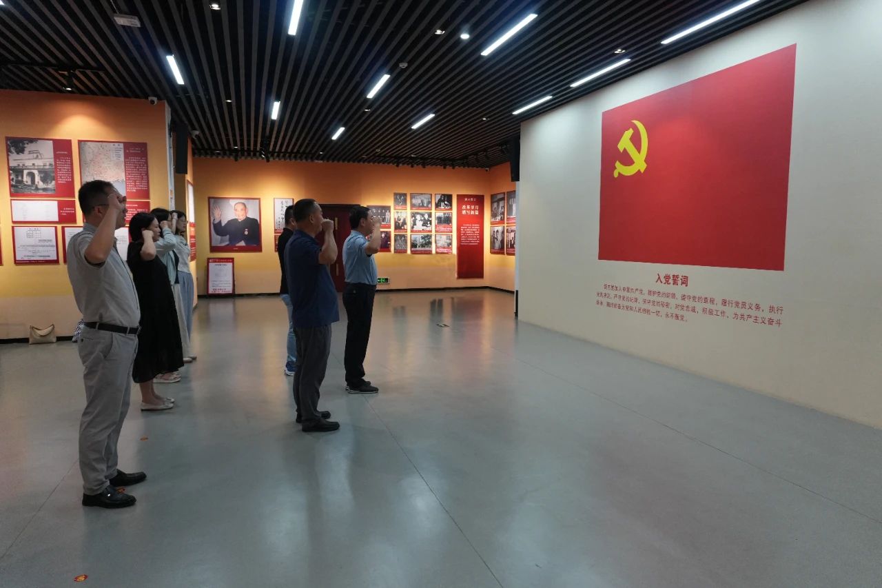 在紀念館二樓的黨旗前,黨支部書記閆輝同志帶領全體黨員莊嚴宣誓,重溫入黨誓詞。“我志愿加入中國共產黨……”鏗鏘有力的誓言回蕩在紀念館上空,表達了深圳藍生腦科醫院黨支部體黨員傳承革命精神、立足崗位建功的堅定決心。