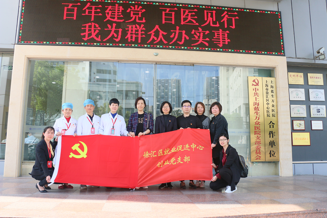 4月26日下午,上海藍生萬眾醫院黨支部與徐匯區就業促進中心創業黨支部開展黨建共建活動,徐匯區就業促進中心主任翁海明、副主任兼創業黨支部書記徐勤等領導參加。