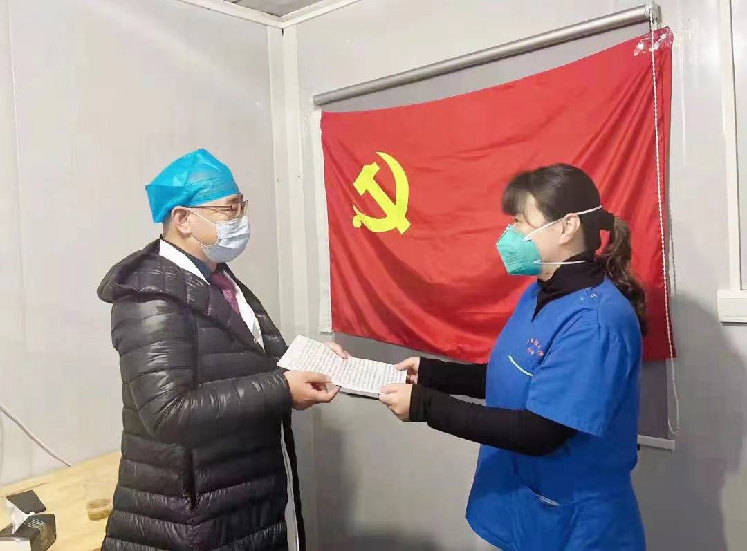 4月2日上午醫(yī)院院里為方艙醫(yī)院療員送行,出發(fā)前的動(dòng)員會(huì)上,王坤偉這么說(shuō):“我非常榮幸能代表天佑醫(yī)院去支援疫情防控,病人救治。新冠無(wú)情,醫(yī)者有愛!我作為一名共產(chǎn)黨員,必須不畏艱難,沖鋒在前,勇作先鋒模范!”他正在以實(shí)際行動(dòng)履行著諾言。