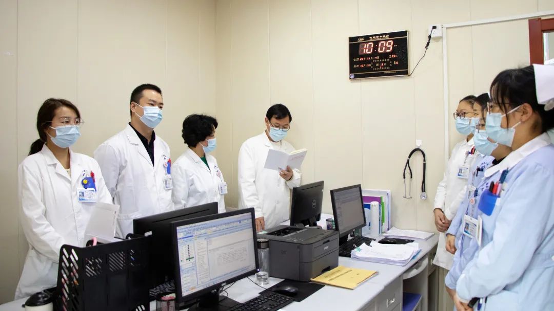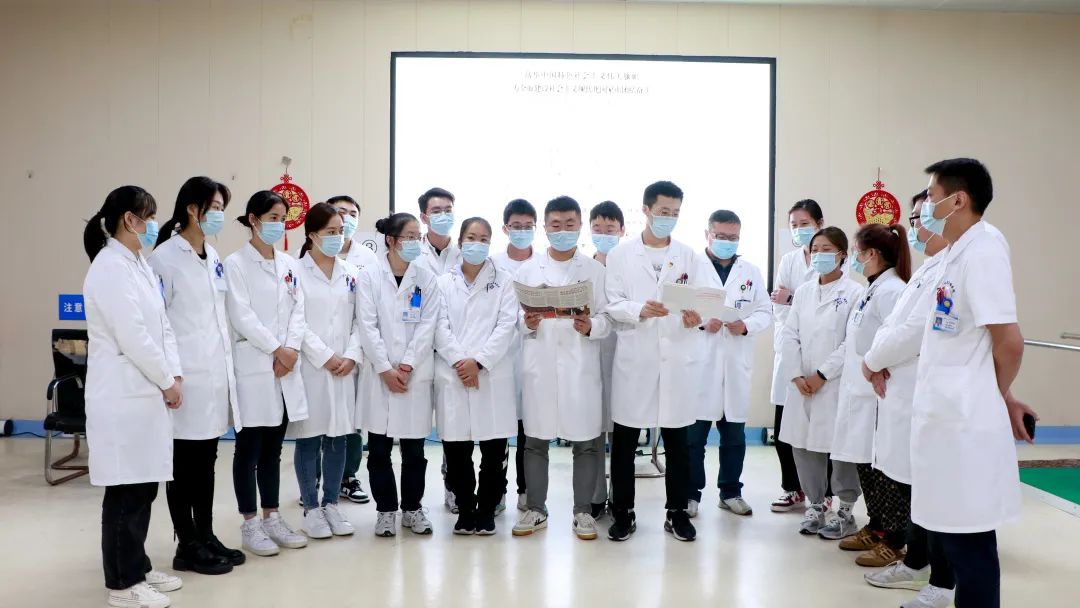 各科室利用每日早交班,采取負(fù)責(zé)人領(lǐng)學(xué)的方式,采用“電視看起來(lái)、報(bào)紙讀起來(lái)、報(bào)告單行本學(xué)起來(lái)、討論活起來(lái)”等方式,帶領(lǐng)科室醫(yī)務(wù)人員學(xué)習(xí)報(bào)告內(nèi)容,推動(dòng)二十大精神入腦入心。