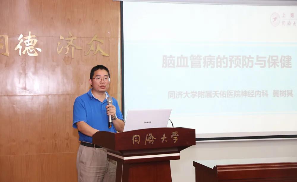 天佑醫院副院長、神經內科學科帶頭人黃樹其主任也是軍人出身,在座談會上,他做了“腦血管病的預防與保健”專題講座,為戰友們送去了一份“健康禮”。