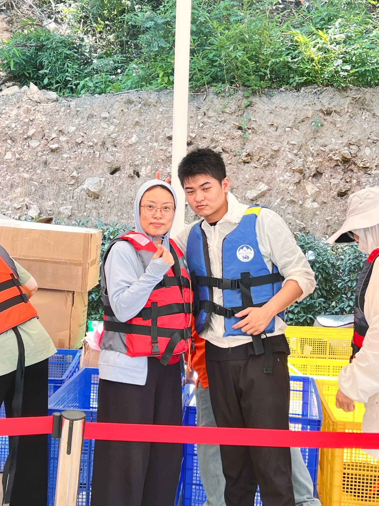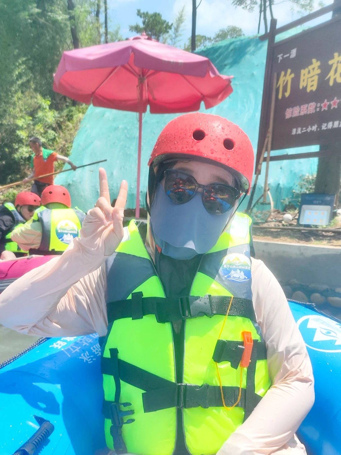 午飯稍作休息后,大家抵達莫干山高山森林漂流點,穿戴好救生衣、頭盔,全副武裝,蓄勢待發!