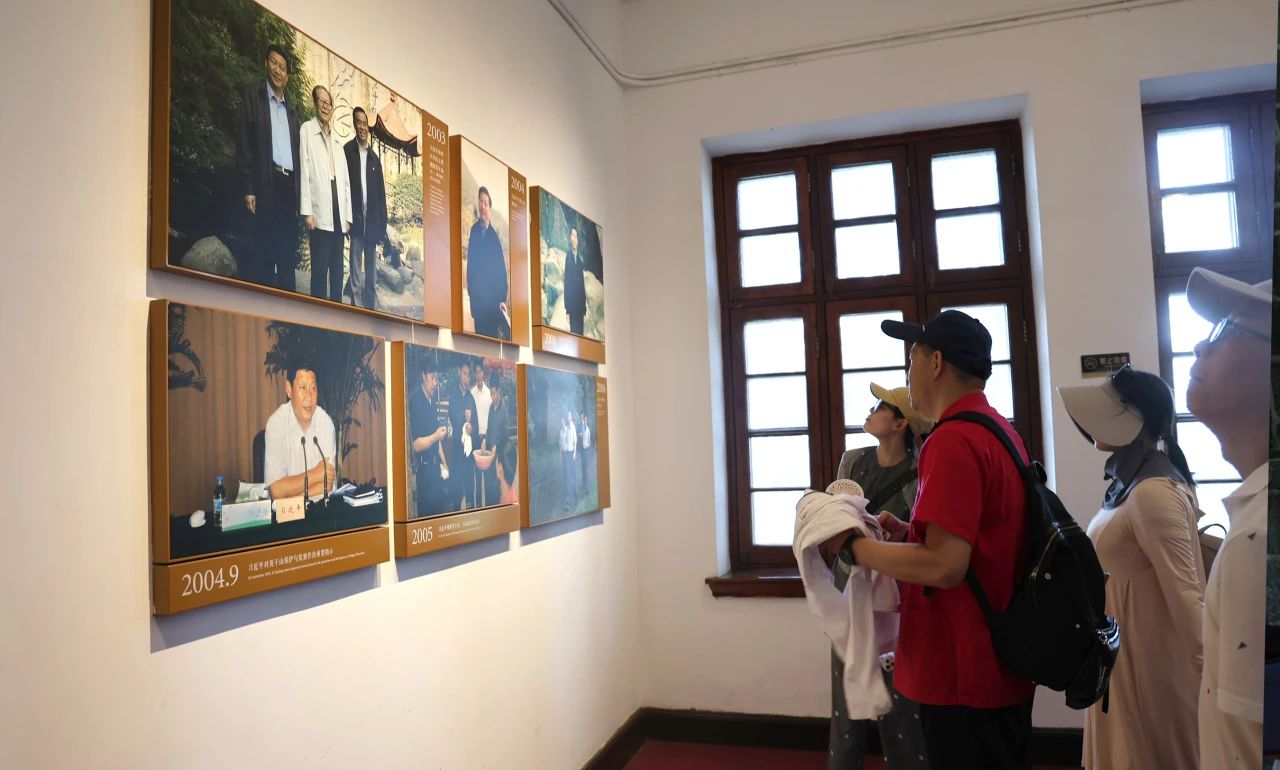 或懷著崇敬之心探訪毛主席下榻處“皇后飯店”。斑駁的磚墻訴說著歲月滄桑,簡樸的室內陳設展示著偉人風范。大家從歷史的遺跡故事中了解新中國建設與莫干山變遷的關聯,亦深刻了解了黨的偉大。此外,大家還游覽了松月廬——蔣介石故居。