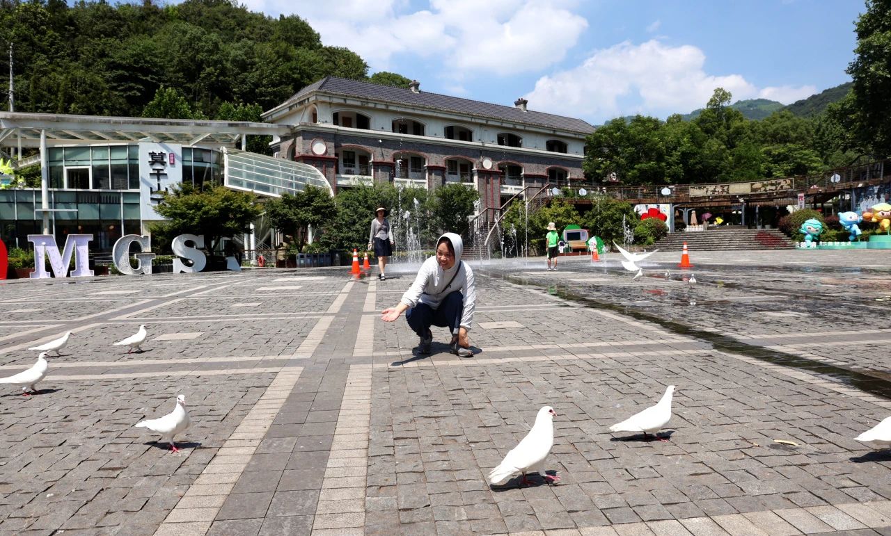 老廠房改造的莫干山美術館,保存完好的民國車站及老車站咖啡,充滿年代感的莫村百貨以及白鴿環繞的庾村廣場,大家漫步其中,這一刻仿佛時間靜止,讓人沉浸在民國風的獨特韻味中。