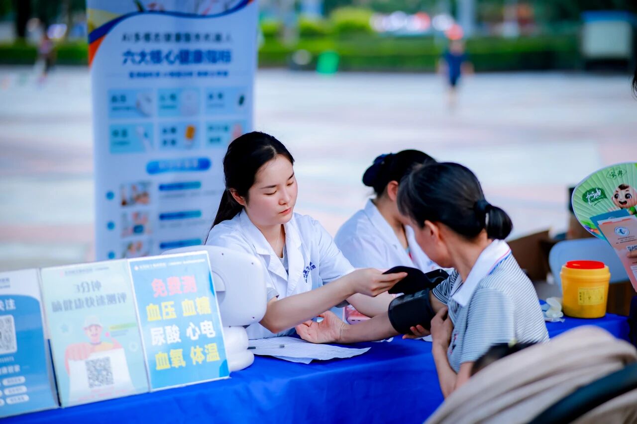 此外,醫院的團隊還積極向前來咨詢的市民宣傳“城市癌癥篩查”項目,普及癌癥早篩知識,引導公眾樹立“防優于治”的健康管理理念,以實際行動推動疾病治療向健康預防轉變。值得一提的是,醫院特別帶來的“藍小醫”ai智能健康檢測機器人在這次服務中也大顯身手。該設備可快速完成血壓、血糖、血脂、心電、尿酸、血氧等多項檢測,即時生成健康數據報告,為專家的咨詢判斷提供有力支持,這種“篩查-咨詢-解答”的一站式服務模式深受市民好評。