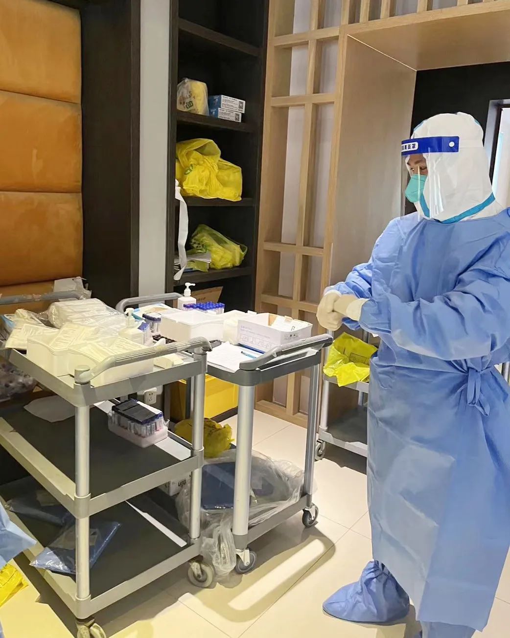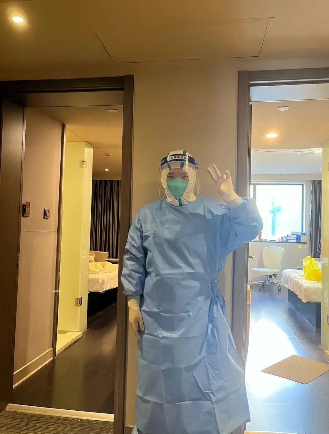我與同事一起被派駐隔離點開展醫療保障工作已經八天了,主要負責隔離人員及隔離區物表核酸樣本采集、接收隔離人員入住等工作。每天從早到晚在各樓層不停奔波,雖然特別辛苦,但是能為防疫工作做出一點小小的貢獻,是我的榮幸。在隔離點的這段日子,更像是一次學習。這是一次全新的挑戰,在這里我對感控又有了全新的認識,在這里忙碌著、努力著,讓我每一天都很充實。