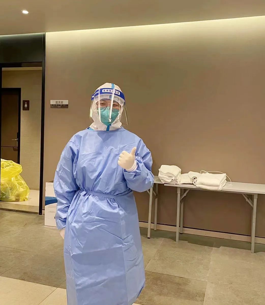 作為NICU 的一名骨干護士,接到護士長的電話后,我毫不猶豫地答應前往隔離點支援。到達隔離點后,我們就緊鑼密鼓地開始了準備工作,培訓、學習、搬運物資、整理材料,一直忙到深夜。第二天一早開始接收隔離人員,穿上密不透風的隔離服,又是一直忙碌到晚上十一點。工作結束后,脫下一身防護裝備,看著滿是壓痕的臉,看著濕透了的洗手服,有種說不出的感受,那一刻為自己是一名抗疫戰士而感到驕傲自豪。