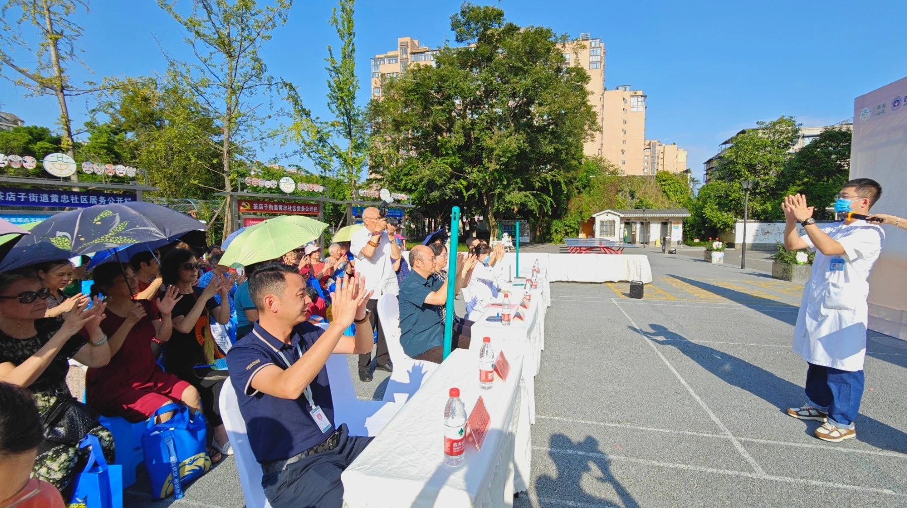 活動現場,四川藍生腦科醫院的專家們精心準備了豐富多彩的內容。康復醫學中心的楊開灝醫生帶領社區居民一同學習并實踐了認知障礙預防操,通過簡單而有效的動作,促進手指及全身關節、肌肉和神經的靈活性與協調性,旨在預防或延緩阿爾茨海默癥的發生。居民們積極參與,現場氣氛熱烈而溫馨。